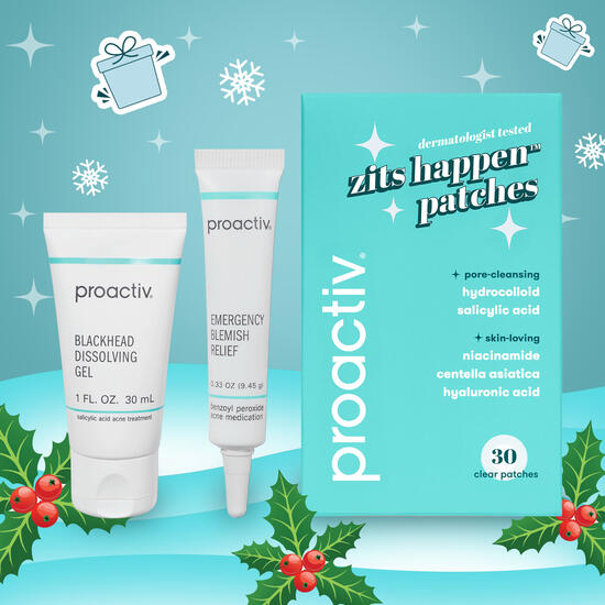 Includes Emergency Blemish Relief, Blackhead Dissolving Gel, and Zits Happen Patches.